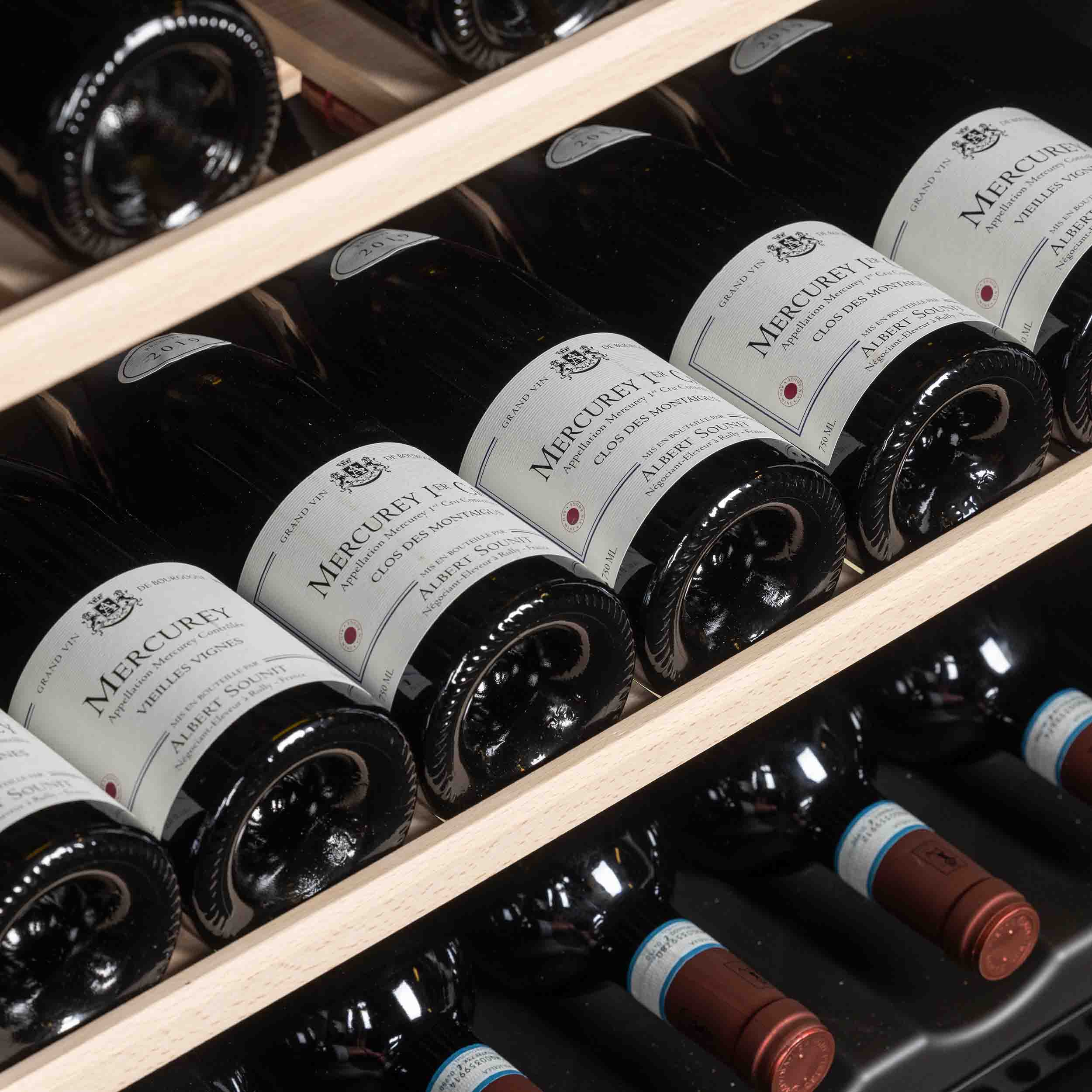 On the shelf you can place all types of bottles, such as Bordeaux, Burgundy, Alsace and Champagne