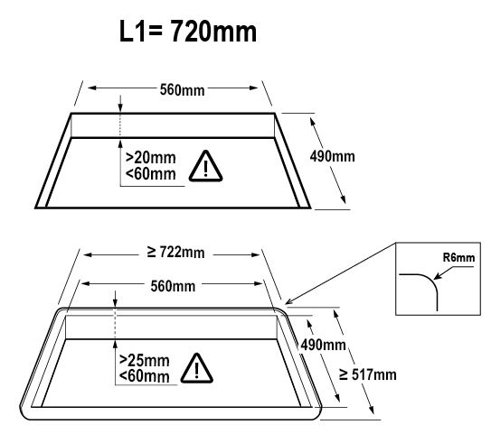 - Built-in (WxDxH): 560 x 490 mm