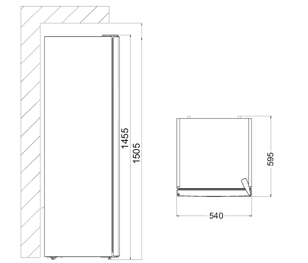 - Product (WxDxH) 540 x 595 x 1455 mm