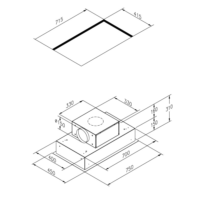 Loftemhætte 75 cm med intern motor og EicoLink