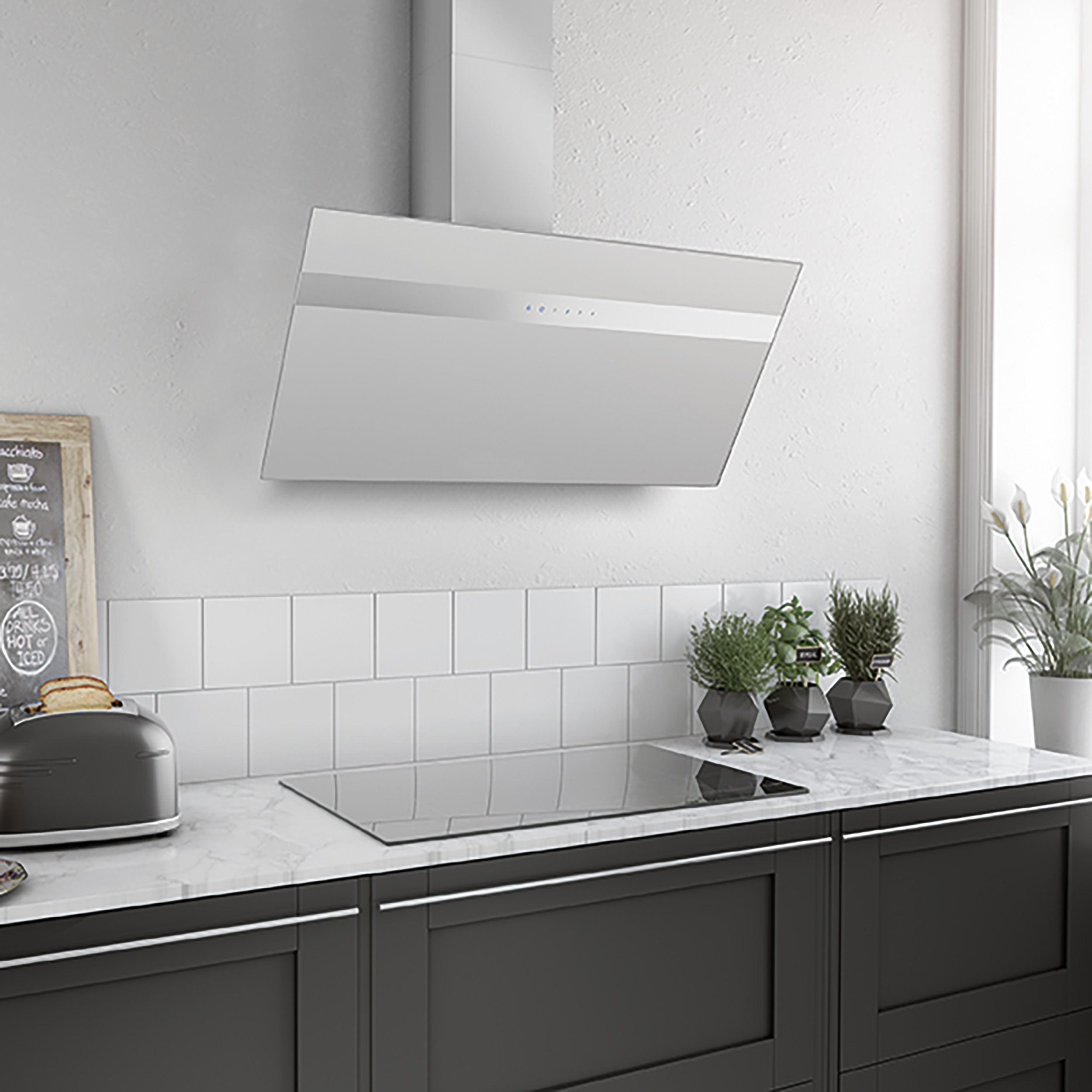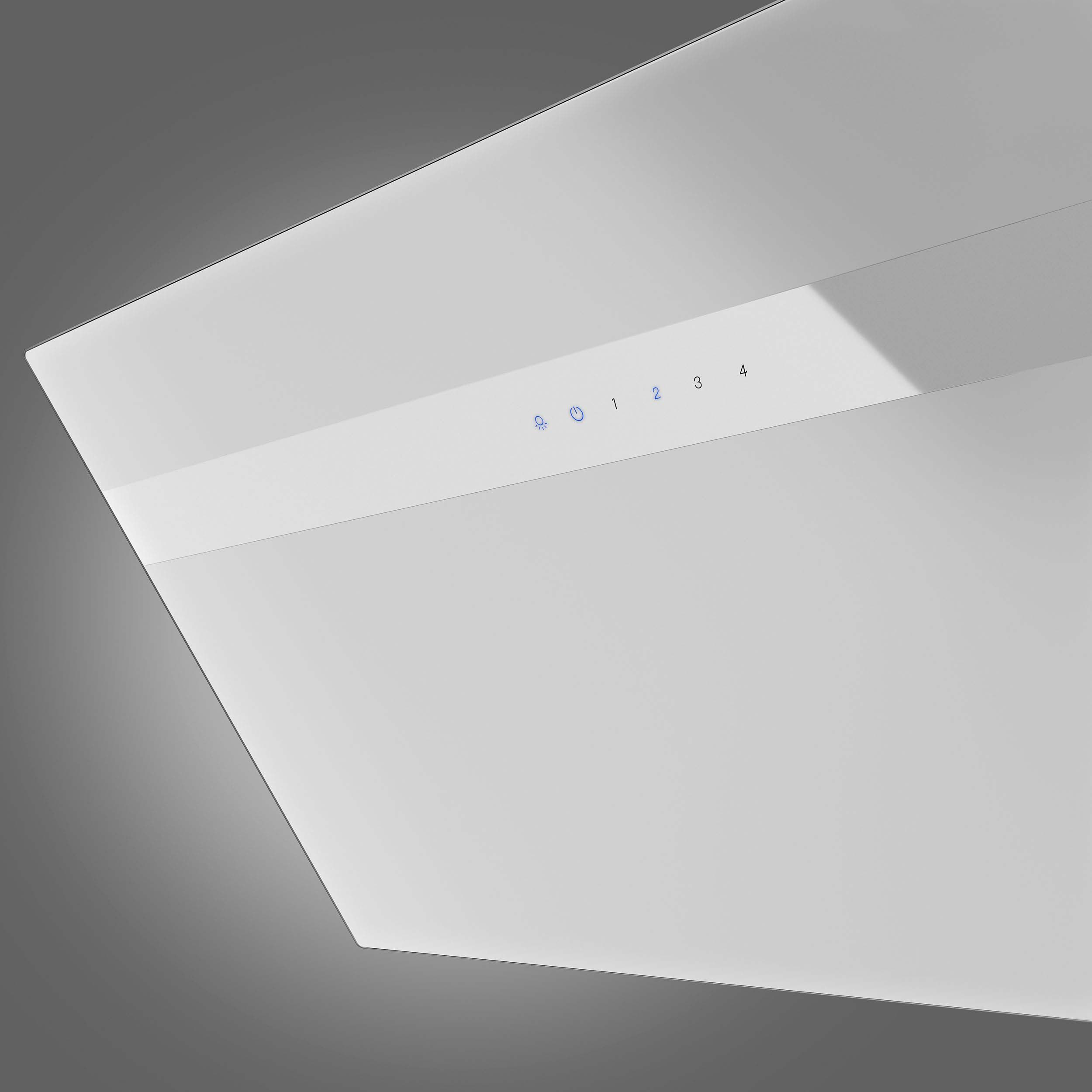 Vægmonteret emfang, skråtstillet. Med intern motor, mulighed for aftræk bagud - Hvid glas/silk hvid glas - 800 mm - A