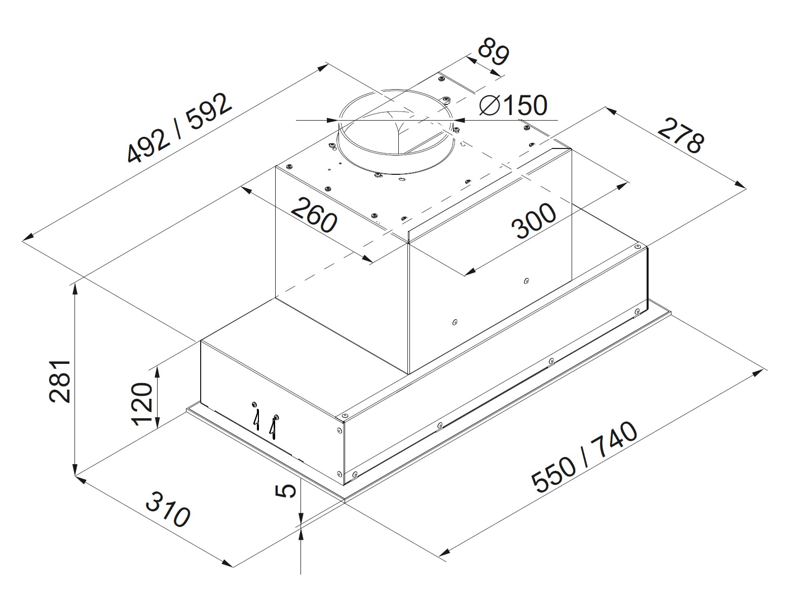 - Produkt (BxDxH) 550 x 310 x 281 mm